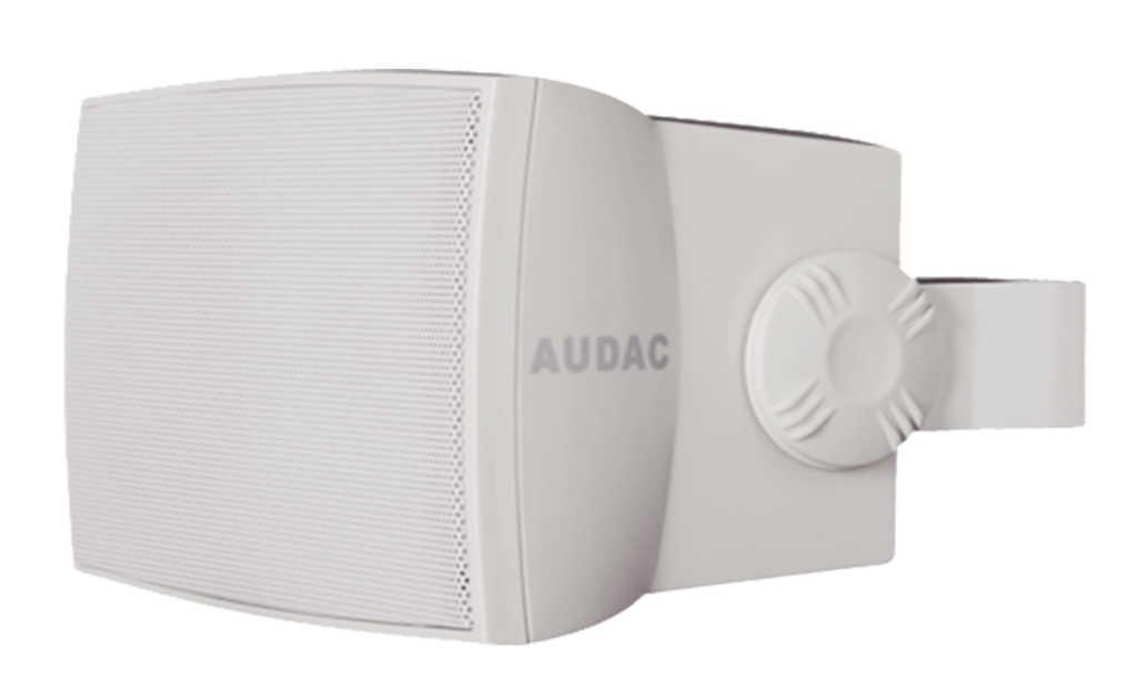 The AUDAC WX302/O speakers are specifically designed for outdoor use and lend themselves to a variety of applications, ensuring true-to-nature, high-fidelity reproduction of music and speech. The electroplated paint steel mounting brackets allow users to mount the WX302/O vertically as well as horizontally. A special treatment with powder coating provides the necessary protection for all weather conditions. Because of the special powder coating, the brackets can pass the 96 hours salt-spray test, which has reached to the standard for outdoor applications. A drain hole behind the aluminum grill allows rainwater to flow out. The waterproof AWX-5 connector at the backside makes sure that this speaker meets the IP55 standards. The WX302/O is a 2-way performance speaker with a 3” low frequency loudspeaker and a 1” dome tweeter. With the rotatable waterproof AWX-5 connector at the back of the speaker, the power tapping can be set in 3 adjustable steps for 100V and one step for 8 Ohm standard low impedance applications : – 20 Watt, 10 Watt, 5 Watt @ 100 V – 30 Watt @ 8 Ohm The speakers are built in a rugged synthetic housing.