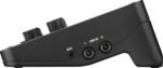 GO:MIXER STUDIO provides multiple ways to monitor sound on the go. There’s a 1/4-inch jack for standard studio headphones, along with a mini jack for wired ear buds. The mini jack also supports a headset or an inline microphone, providing an additional recording source. Two 1/4-inch line outputs are available to connect to a speaker system in a studio or an indoor shooting location, and sound control is simple with dedicated knobs on the panel.
