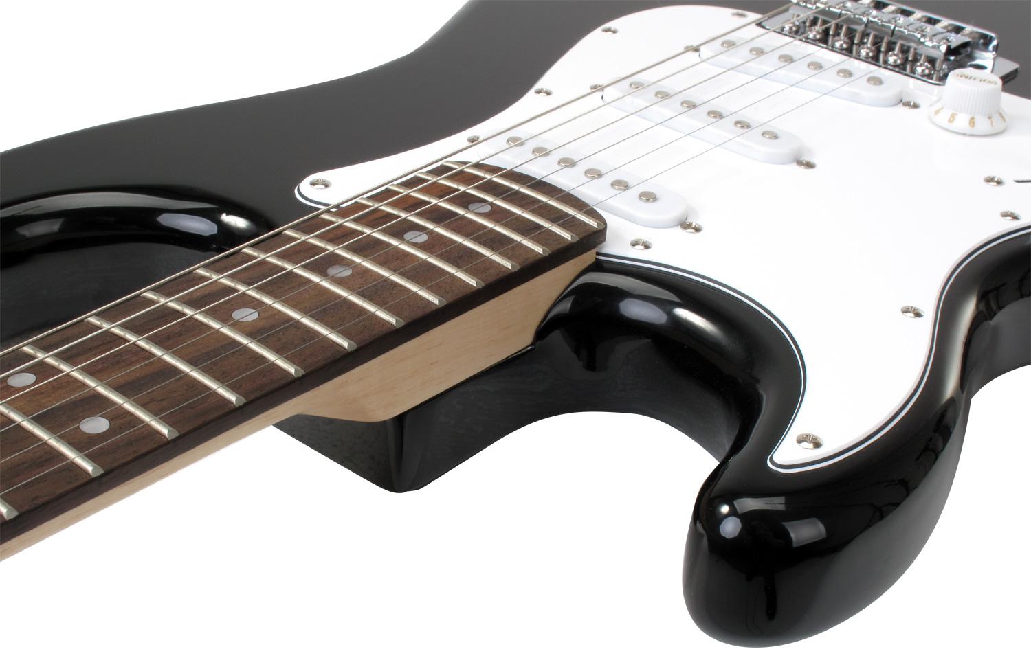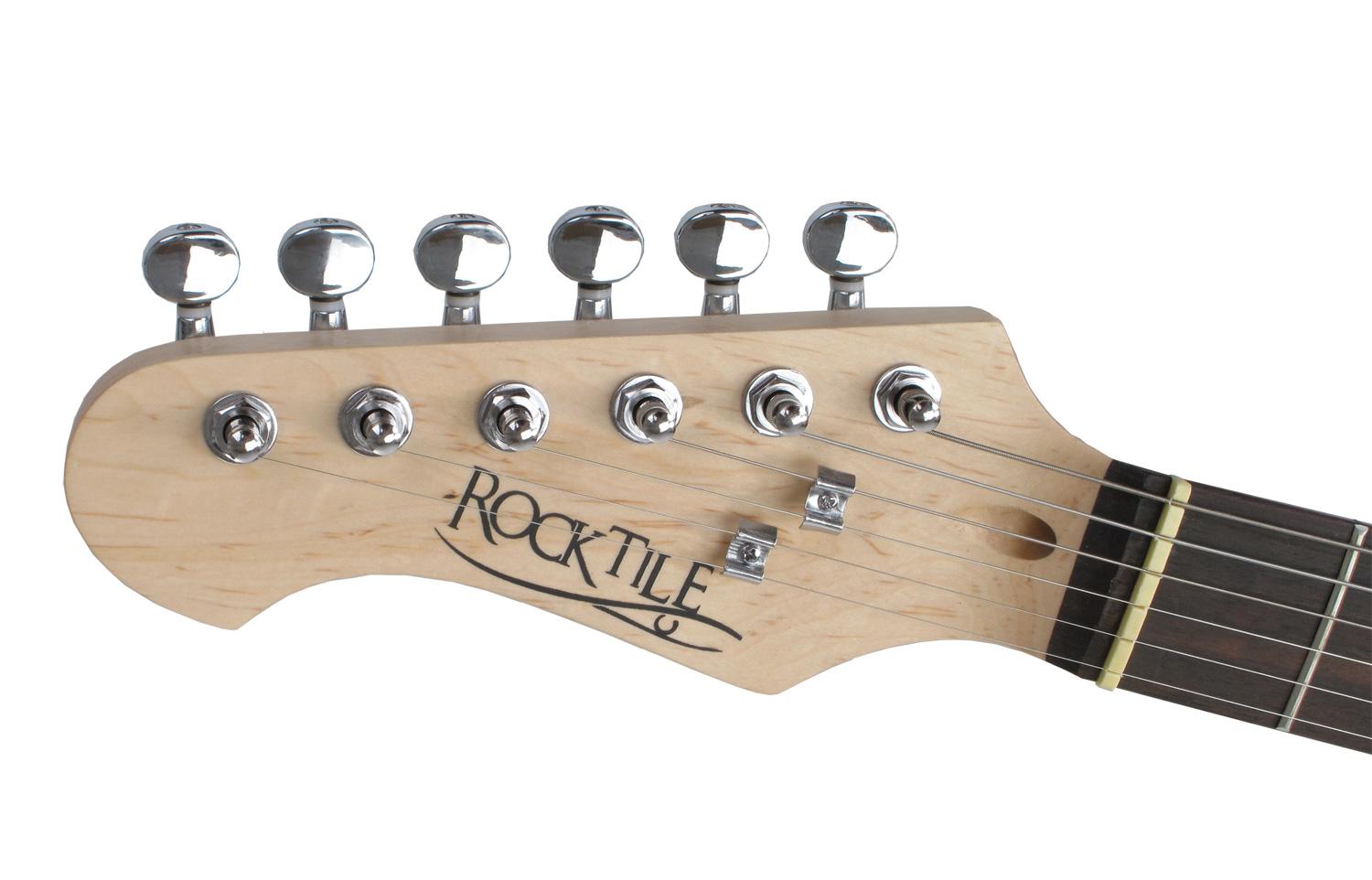 Rocktile elektricne gitare iz serije Pro isticu se lepim izgledom i odlicnom izradom. Gitara je napravljena od odabranog drveta i opremljena profesionalnim hardware-om. Tri singl magneta daju vrhunski zvuk koji nemaju gitare u ovom cenovnom rangu. Levoruka gitara sa klasicnim Strat oblikom, zavrsnim dubokim crnim lakom i belom maskom impresionirace sve ljubitelje elektricnih gitara koji ce ovim instrumentom psolutno biti zadovoljni u svakom smislu.