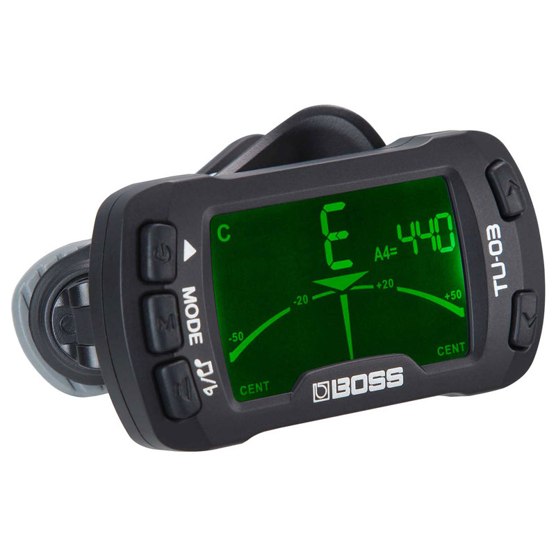 Compact and simple to operate, the TU-03 puts two essential music tools within easy reach. It combines a chromatic tuner and metronome in one device that clips onto the headstock of nearly any stringed instrument, providing instant-access convenience everywhere you play. Packed with deep features not typically found in clip-on units, the TU-03 offers fast and accurate tuning performance with five different modes, plus advanced metronome functionality with a built-in speaker and numerous pattern/beat variations.