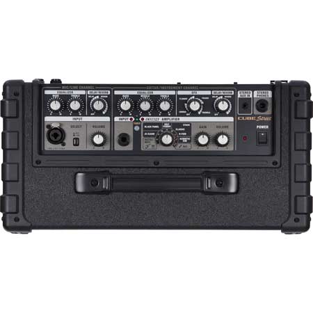 Roland CUBE amps are famous for performance that exceeds their physical size, and the CUBE Street is no exception. With two high performance neodymium speakers onboard, this amp sounds incredible, and is capable of high-volume output that defies its physical dimensions. Best of all, it can run for up to 15 hours on just six AA alkaline batteries.