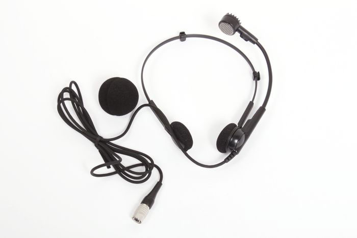 PRO8HEx Hypercardioid Dynamic Headworn Microphone, less power module. 55” (1.4 m) permanently attached miniature cable terminated with a locking 4-pin connector for use with Audio-Technica cW-style body-pack transmitters. Includes windscreen. See PRO 8HEx.
