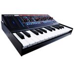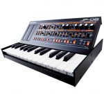 The K-25m is a 25-key, velocity sensitive keyboard designed for use with the Roland Boutique series. Measuring less than 12″ across, the K-25m acts as a dock for any Roland Boutique module, and once in place the module can be tilted at two different angles for easier viewing and sound programming, or can be laid completely flat. The compact keyboard can also address a range from -4 to +5 octaves when used with the relevant module.