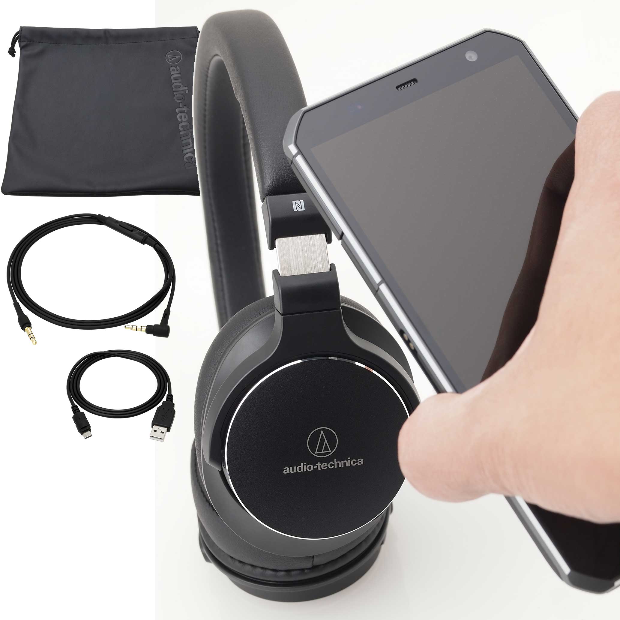 The ATH-SR5BT on-ear headphones features powerful 45 mm drivers and comes equipped with a mic and volume/control switch built into the left earcup, making it easy to answer calls, adjust volume and handle playback (play, pause, fast-forward, reverse, next/previous track) of music and video on compatible smartphones and other portable devices. A 1.2 m (3.9′) smartphone cable with mic and controls is also included to provide a standard wired connection in areas where use of Bluetooth wireless technology is prohibited, for when battery power is low, or when Hi-Res Audio (5 – 40,000 Hz frequency response) is desired.