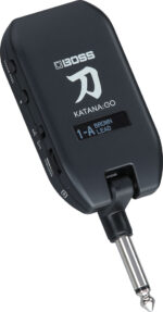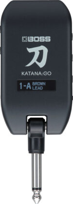 KATANA:GO delivers premium sound for everyday playing without the hassle of amps, pedals, and computer interfaces. Simply plug it in, connect earbuds or headphones, call up a memory, and start rocking. Onboard controls provide access to volume, memory selection, and other essential functions, and you can easily view the current memory and tuner with the built-in display. The rechargeable battery provides up to five hours of continuous playing time, and the integrated 1/4-inch plug folds down to create a pocket-size package that’s ready to travel anywhere.