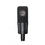 The AT4040 side-address condenser microphone features an advanced large diaphragm tensioned specifically to provide smooth, natural sonic characteristics. A marriage of technical precision and artistic inspiration, the AT4040 offers exceptionally low noise, wide dynamic range and high-SPL capability for greatest versatility. This ultra-consistent microphone may be used with confidence in a wide variety of studio and live miking applications, even under the stringent demands of digital recording systems. The AT4040’s low-noise circuitry is symmetrical and transformerless, resulting in exceptional transient response and clean output signals for transparent reproduction of even the most troublesome of instruments and sound effects.