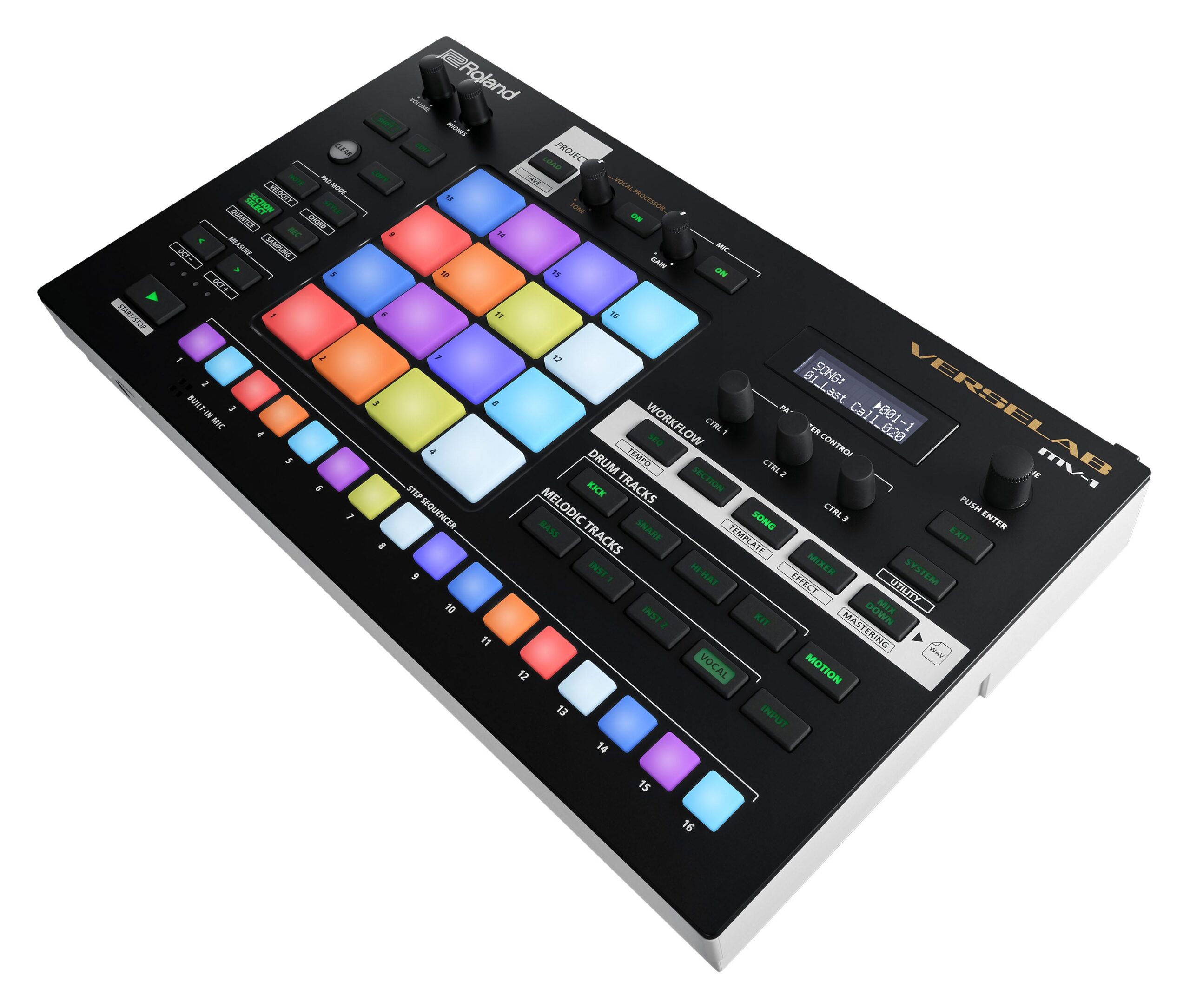 Go beyond the mouse and keyboard with VERSELAB’s inspiring RGB-lit pads and hands-on controls. Combining the TR-REC step sequencer found in legendary Roland drum machines with an ultra-responsive 4×4 pad matrix, you can bang out drum tracks, basslines, and melodic parts as fast as they come to you.