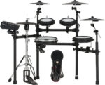 Mid-level V-Drums 5 Series kit with the V51 module, digital snare, ride, and hi-hat pads, high-performance analog pads, and a versatile rack stand.